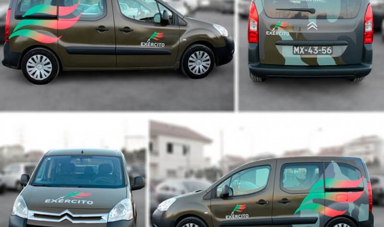 A decoração de frota do exército foi mais um caso de sucesso em que tivemos o prazer de colaborar, fugindo este ao contexto de publicidade em automóveis, nosso labor habitual. Ainda que com cariz de identificação da frota, para esta aplicação, foi necessário a utilização de vinil polimérico de impressão, de forma a corresponder aos detalhes da identidade de marca. Para esclarecimentos sobre os tipos de vinil, consulte o nosso Guia Completo: Saiba tudo sobre Vinil, e acompanhe as diferenças do material, bem como as suas utilizações práticas.