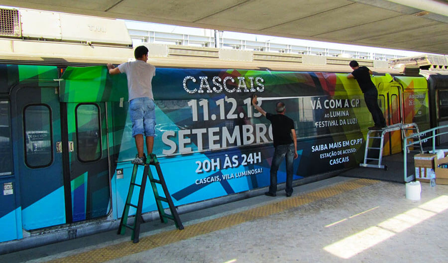 Não é todos os dias que se decoram carruagens, mas já foram por 3 anos consecutivos que a Effect teve o prazer de decorar carruagens alusivas ao Lumina, Fesival da luz em Cascais. O vinil para este tipo de decoração tem de obedecer a determinados critérios, sabida a erosão a que estão expostos. Saiba mais sobre os tipos de vinil aqui!